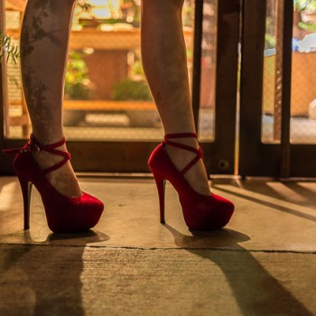 陰影が映える赤背景、根強い人気のクリムゾンです。脚元から全身を予想しちゃいたくなるのも楽しい。モデルさんのコーディネートを楽しめるのもポートレートの醍醐味のひとつ。